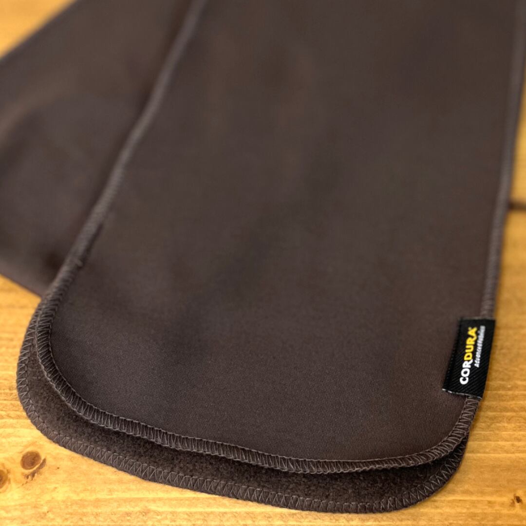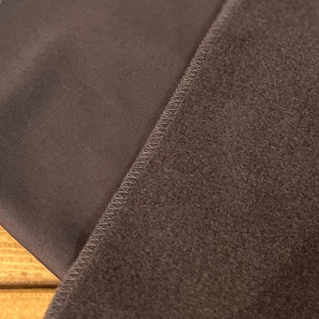 なめらかでマットな表面感。裏面は、保温性のあるフリース生地。