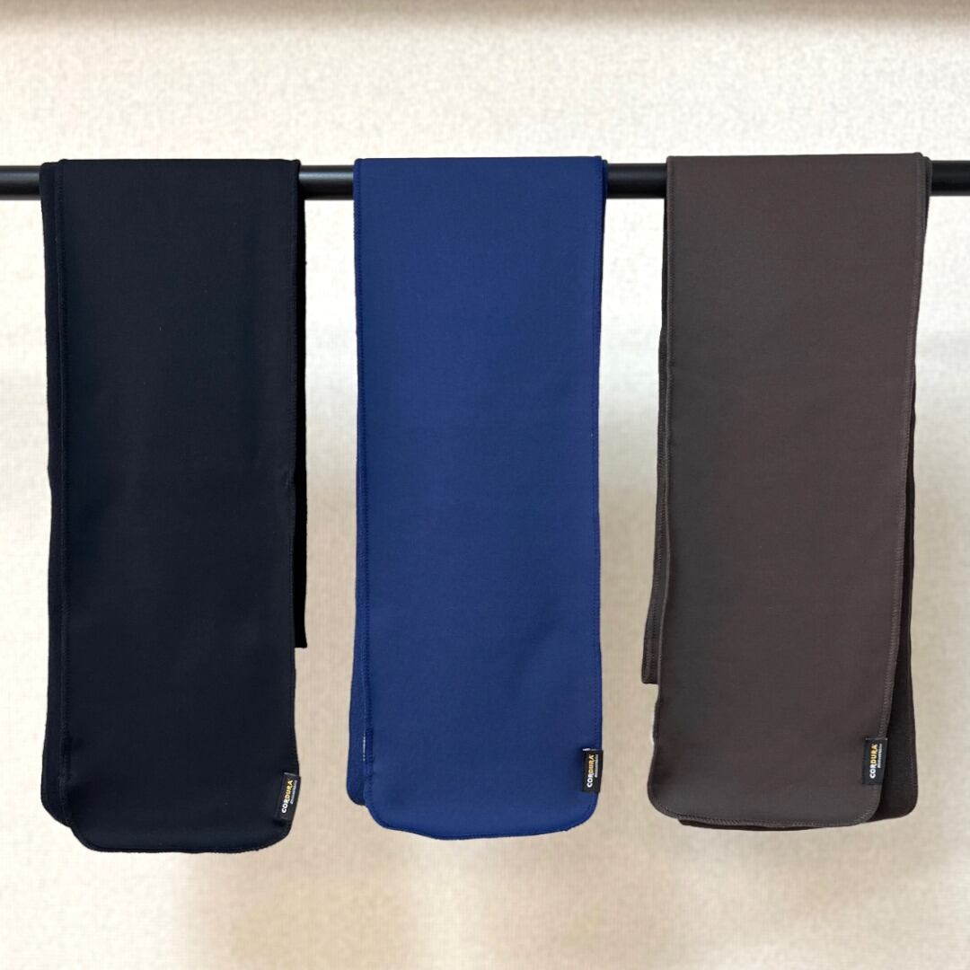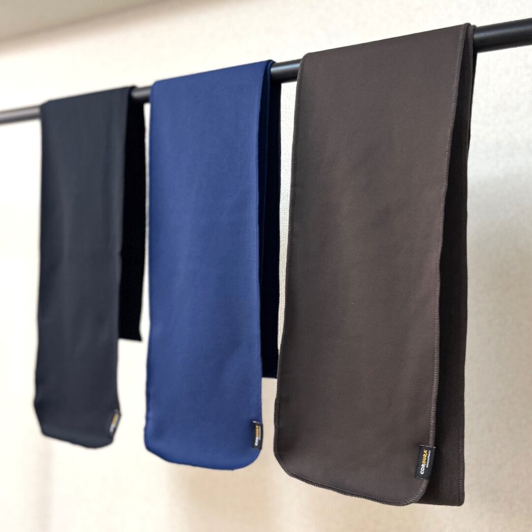 サッと首に巻きやすく、かさばらないショートタイプ。