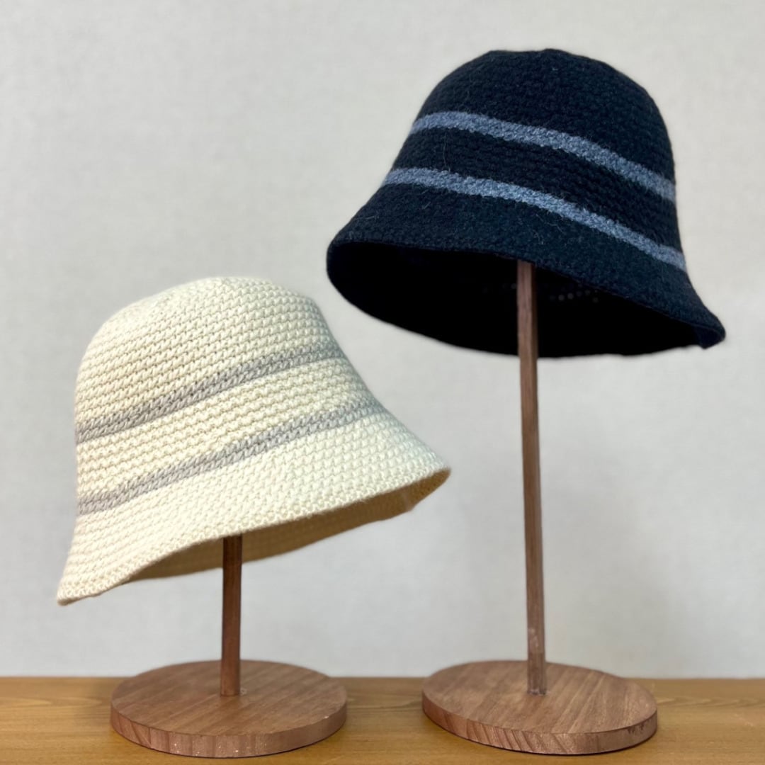 【Limited items】line knitting bucket hat :ラインニットバケットハット
