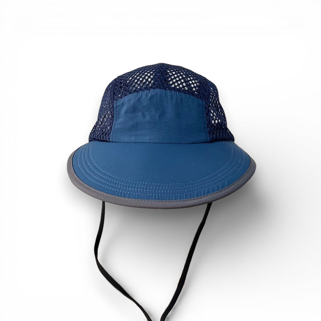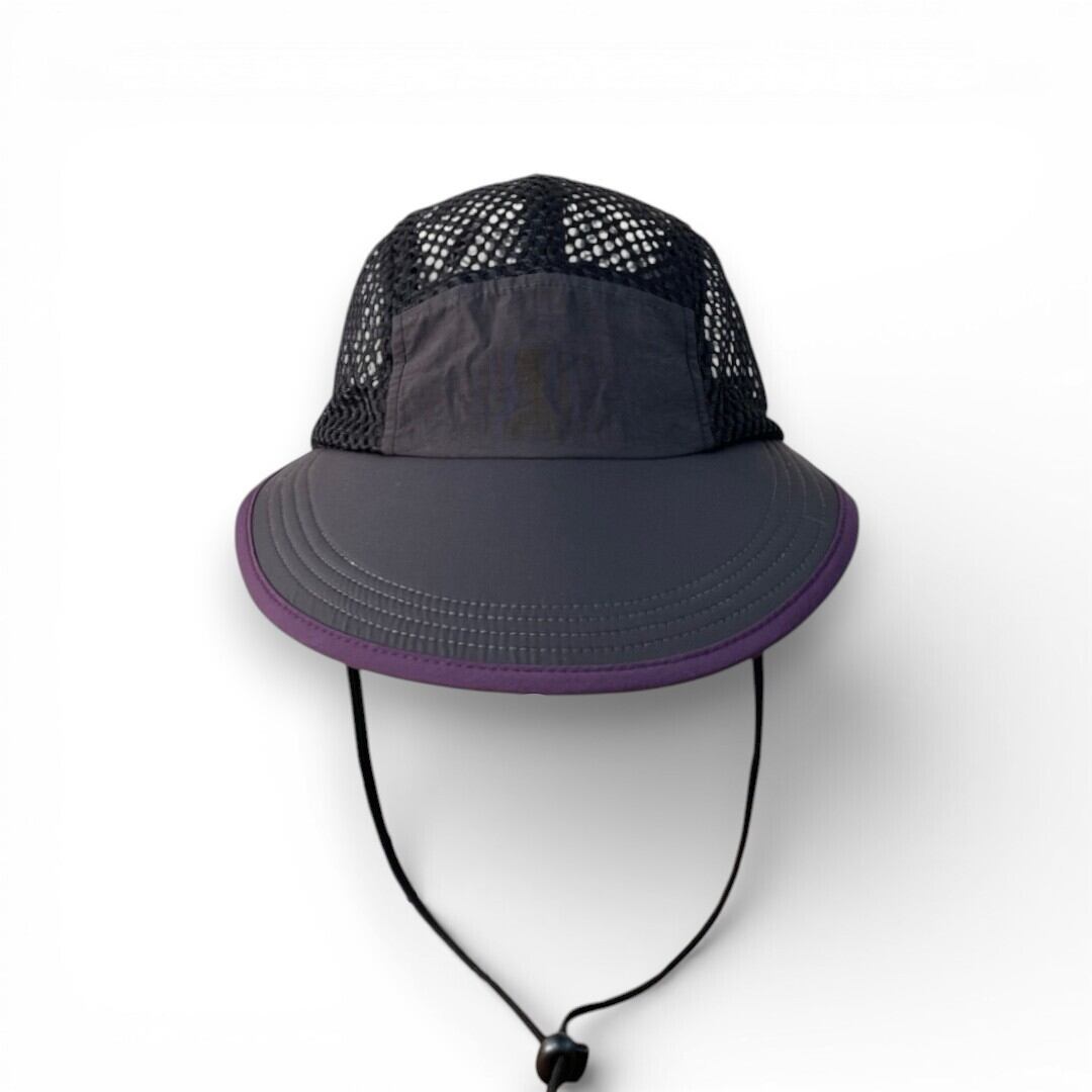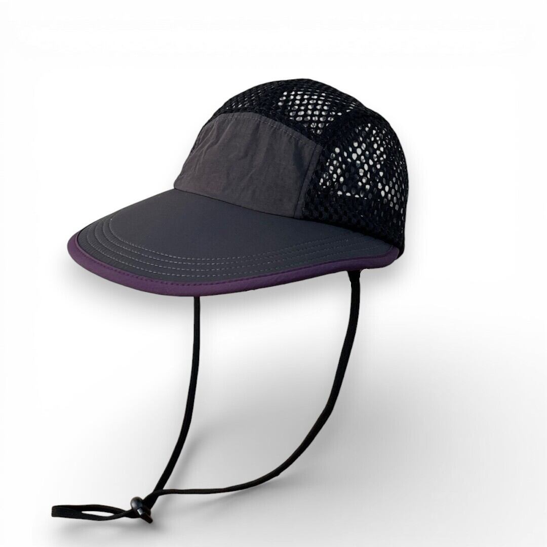 顔全体を広範囲で日差しからガードする幅広つばが特徴のキャップ。