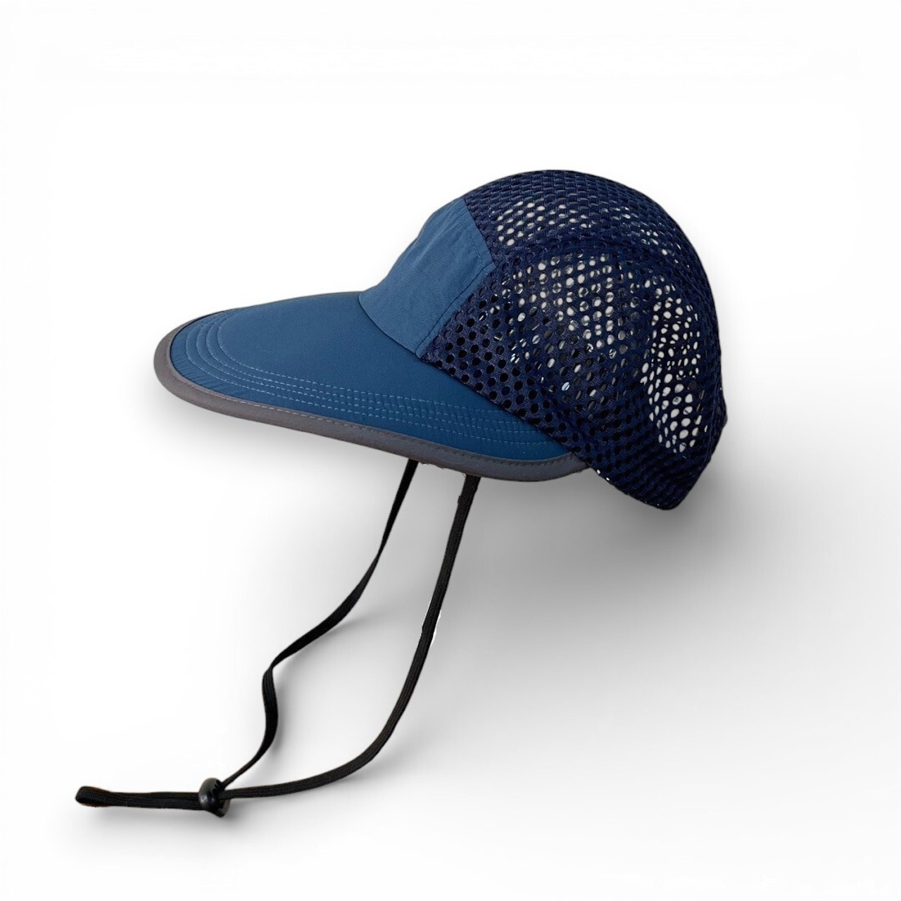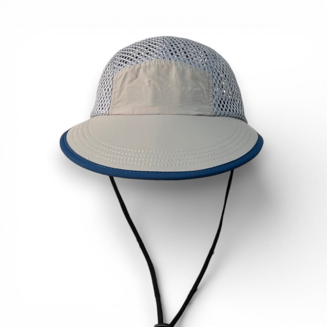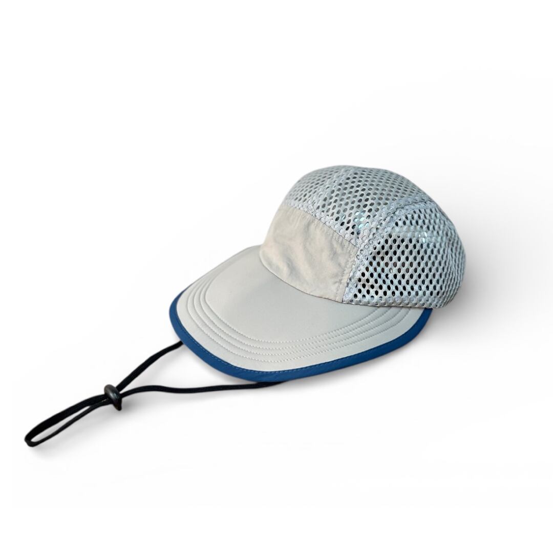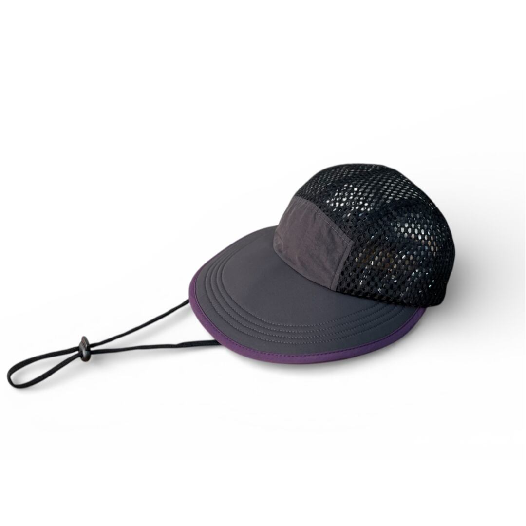 顔全体を広範囲で日差しからガードする幅広つばが特徴のキャップ。
