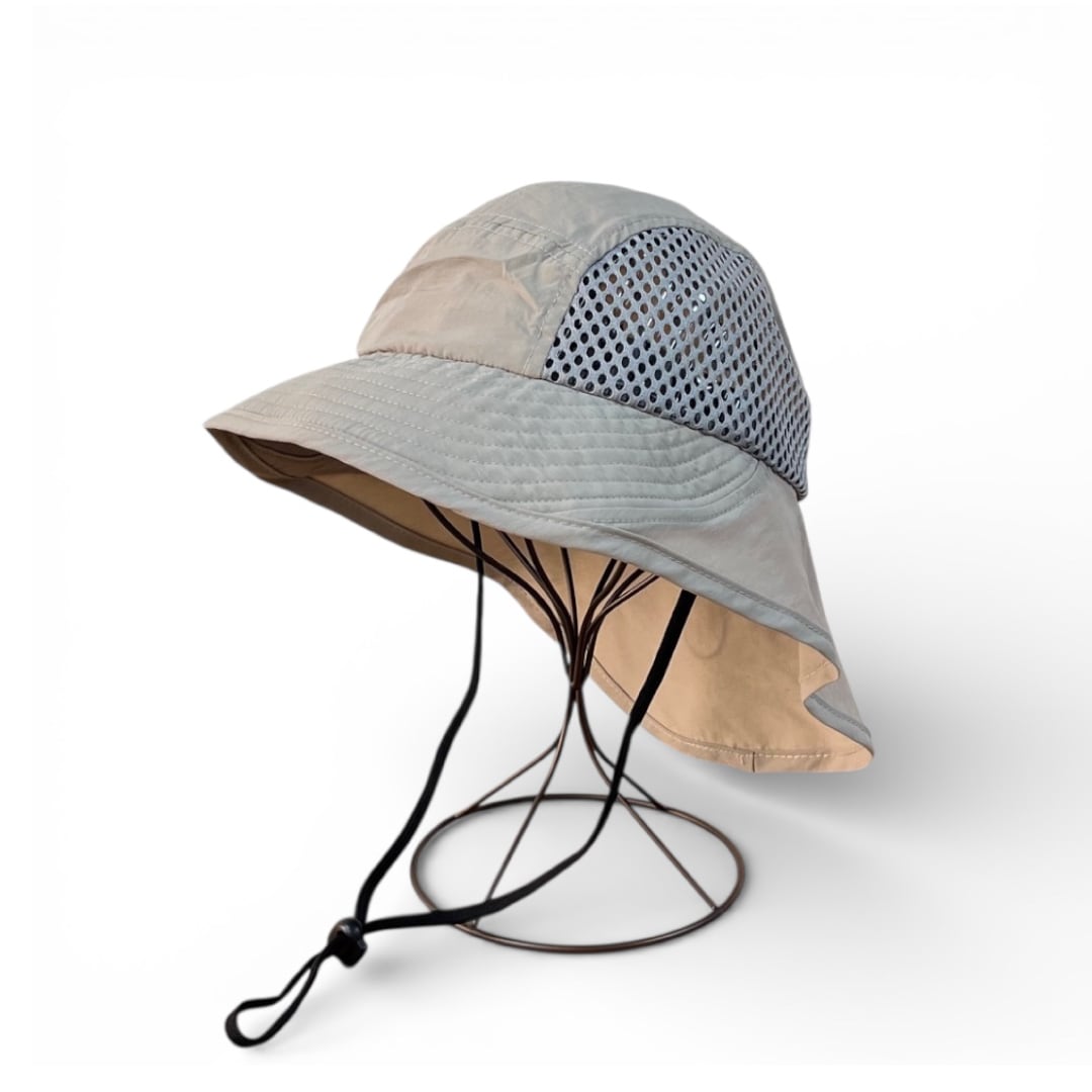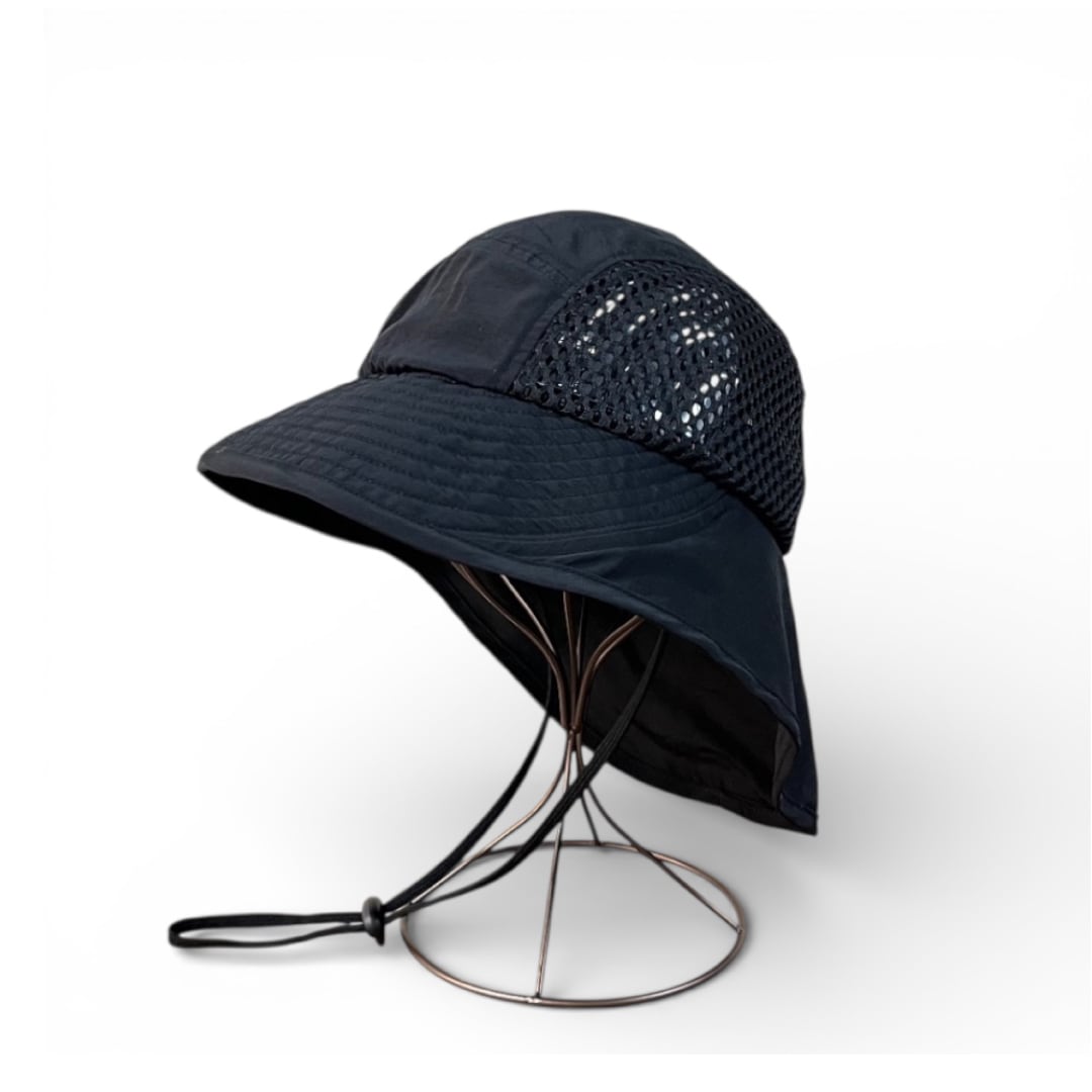 キャップ型のブリムから首の後ろまで施したドレープ状の生地が、日差しから後部をガード。暑さを軽減し、体温上昇を抑制します。